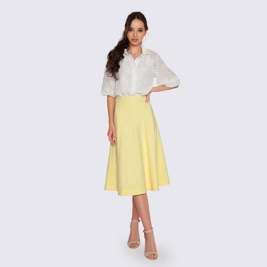 Vestido camisero con falda amarilla