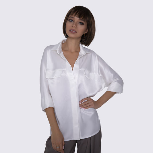 Blusa suelta de color blanco sedoso