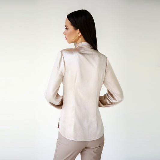 Camisa ajustada de seda color beige