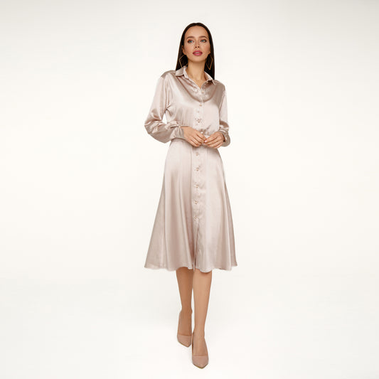 Vestido camisero beige sedoso