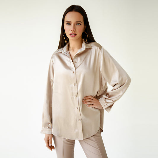 Camisa oversize sedosa de color beige